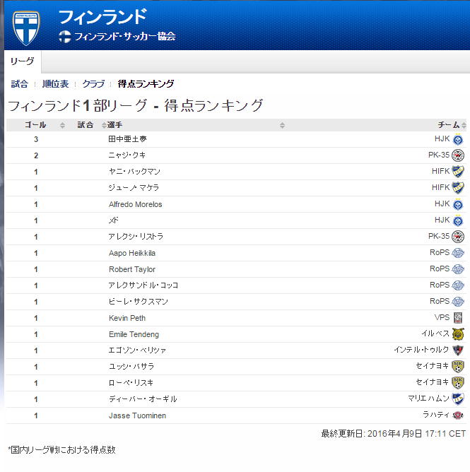 連続試合ゴール 信翁 2016年4月9日 連続試合ゴール2017-02-14T09:27:46+09:00 海外 亜土夢が所属するヴェイッカウスリーガHJKは、ホームでVPSバーサと対戦した。結果は3-1でHJKが勝利した。この試合でも亜土夢はヘディングによるゴールを奪い、通算3得点となり、暫定ながらヴェイッカウスリーガ得点王争いの単独トップに立った。